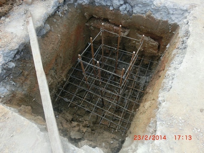 鋼骨綁扎工程:審查鋼骨的搭接長短,程度豎直。